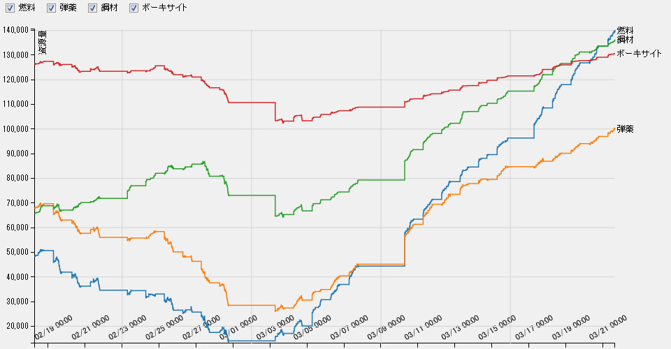 ほとんどが4-4にて卯月掘るのに費やした資源。