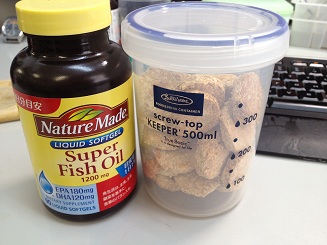 昼弁当後に、フィッシュオイルを飲む習慣を入れました。