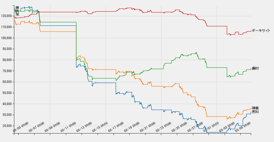 ほとんどが4-4にて卯月掘るのに費やした資源。